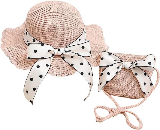 Toddler Girls Summer Straw Hat Wide Brim Floppy Beach Straw Bucket Hat with Bowknot Sun Protection Hats for Kids Girls 2-5 T