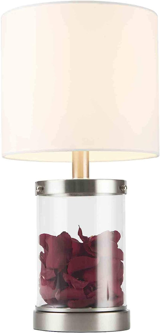 Fillable Table Lamp, Modern Desk Lamp with Clear Glass Fillable Base, 18" Nautical Coastal Sea Accent Lamp with Fabric Shade and Steel Base for Seashell Nightstand Living Room Office