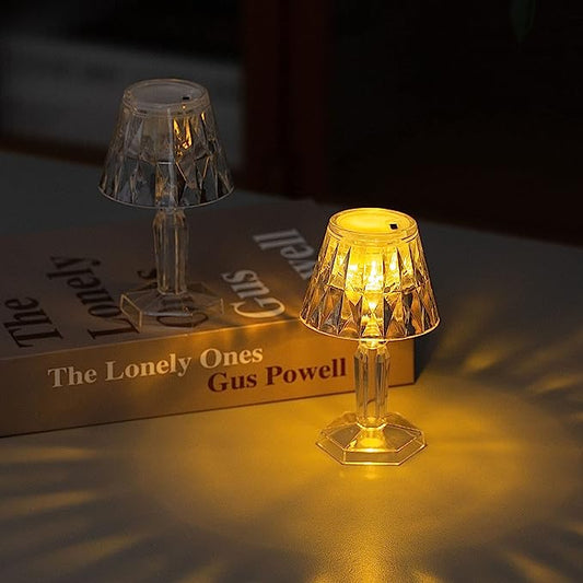 6 Pack Warm White Clear Crystal Mini Acrylic LED Desk Lamps, Mini Table Lamp,Decorative Accent Night Lights,Appropriate for a Child`s Party, Child`s Vanity,Bar Decor